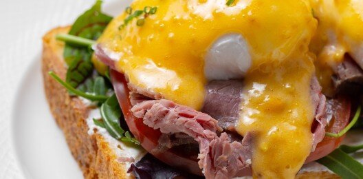 Бенедикт с ростбифом на бриоши