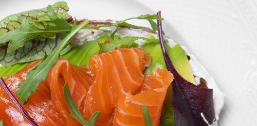 Брускетта с лососем, авокадо и сливочным кремом