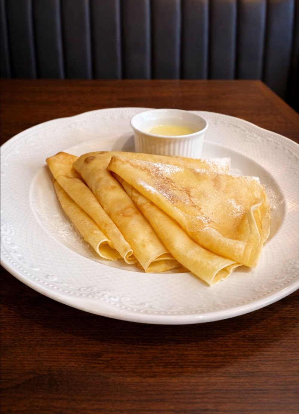 Классические тонкие домашние блины с соусом на выбор: сгущенка, сметана, мед, малиновый кули, крем чиз.