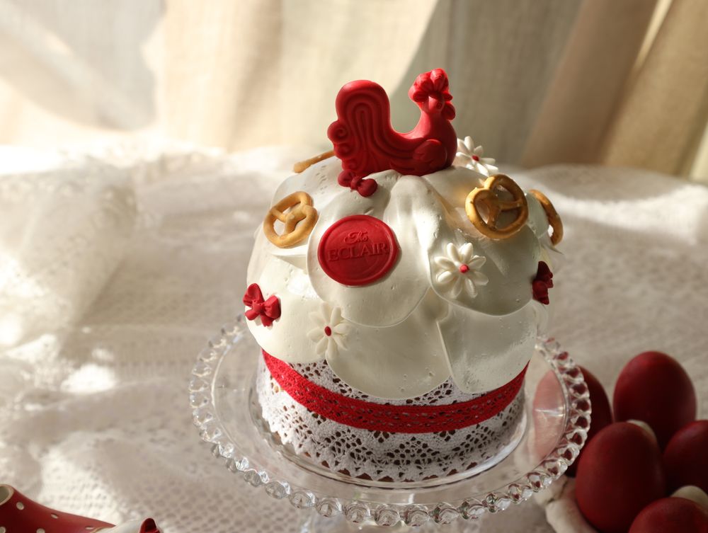Кулич дрожжевой маленький с клубничным конфи и кремом на белом шоколаде.