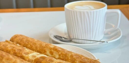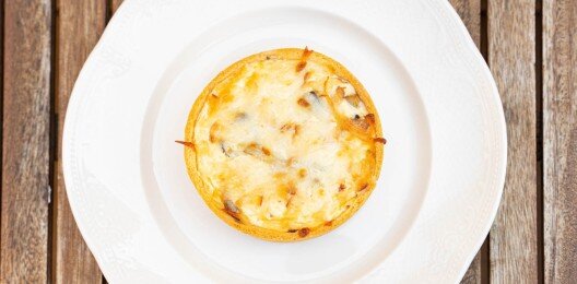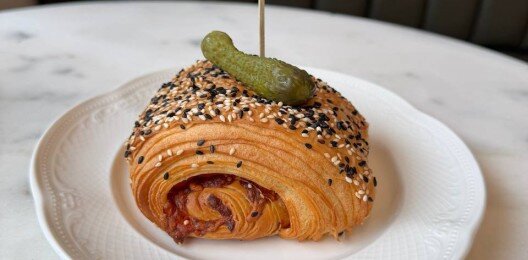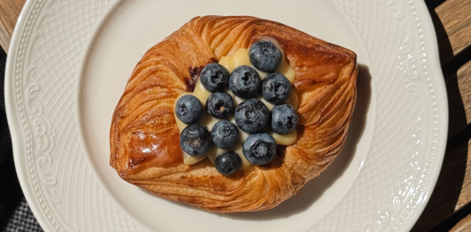 Хрустящее слоеное тесто идеально сочетается с нежным заварным кремом и сочными свежими ягодами клубники. Конфитюр из клубники и мяты добавляет яркую нотку свежести и фруктовой насыщенности. Десерт объединяет в себе нежность, аромат и летнее настроение в каждом кусочке.
